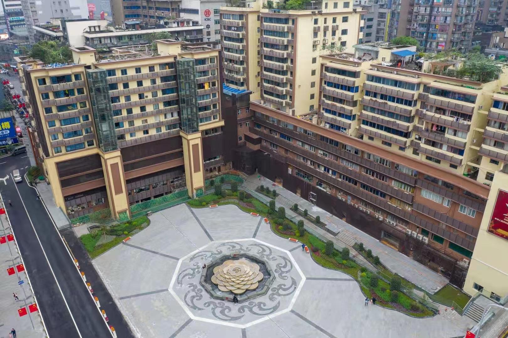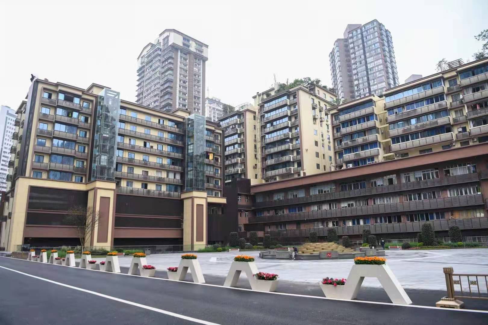 杨家坪商圈居住片区老旧小区一期改造项目,为商业、多层和高层住宅楼相结合,结构类型为框架砖混结构。本项目范围内为杨正街11号及珠江路49号,均为底层商业,上部住宅组合。杨正街11#楼1、2单元住宅6层,商业5层(正街下3层);3单元住宅为8层、商业5层(正街下3层);珠江路49号1和2单元住宅为6层,商业5层(正街下3层)面积约23238.24平方米,包括墙面处理、基层修复、面层粉刷、增加装饰线条,新增空调外机位、空调百叶、铝板幕墙及玻璃幕墙、电梯4部,断桥铝合金窗更换,老旧商业烟道、店招更换、室外排水系统、屋面防水、公共区域内装改造等。新建广场面积约4375平方米,地下车库约2800平方米,建设内容包括地面铺装、广场绿化、地下车库建设、通讯改造、龙湖道路(地面砖铺装,沥青道路)、珠江路49号楼5单元山墙旁钢走道、车库外(人行道旁)干挂石材等;未包括九龙泉。